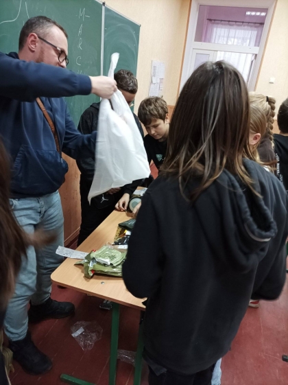 З метою національно-патріотичного виховання для учнів 7 класу відбулася надзвичайно важлива й пізнавальна зустріч із старшим бойовим медиком роти, сержантом Сергієм Володимировичем Павликом – татом учениці нашого класу, Павлик Поліни. Темою зустрічі стало «Надання першої домедичної допомоги у військовий час».