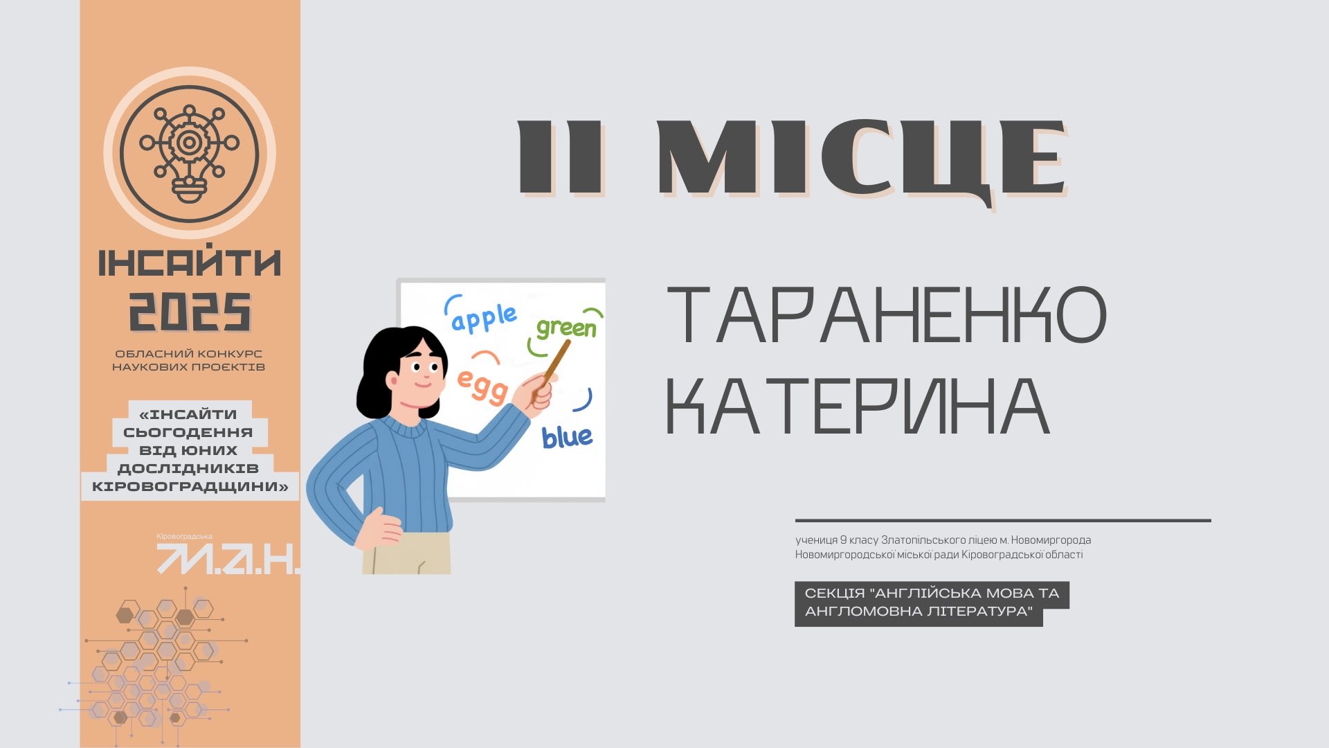 Тараненко Катерина, учениця 8-А класу — ІІ місце