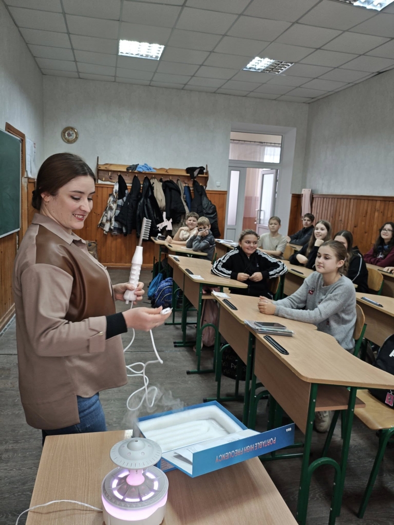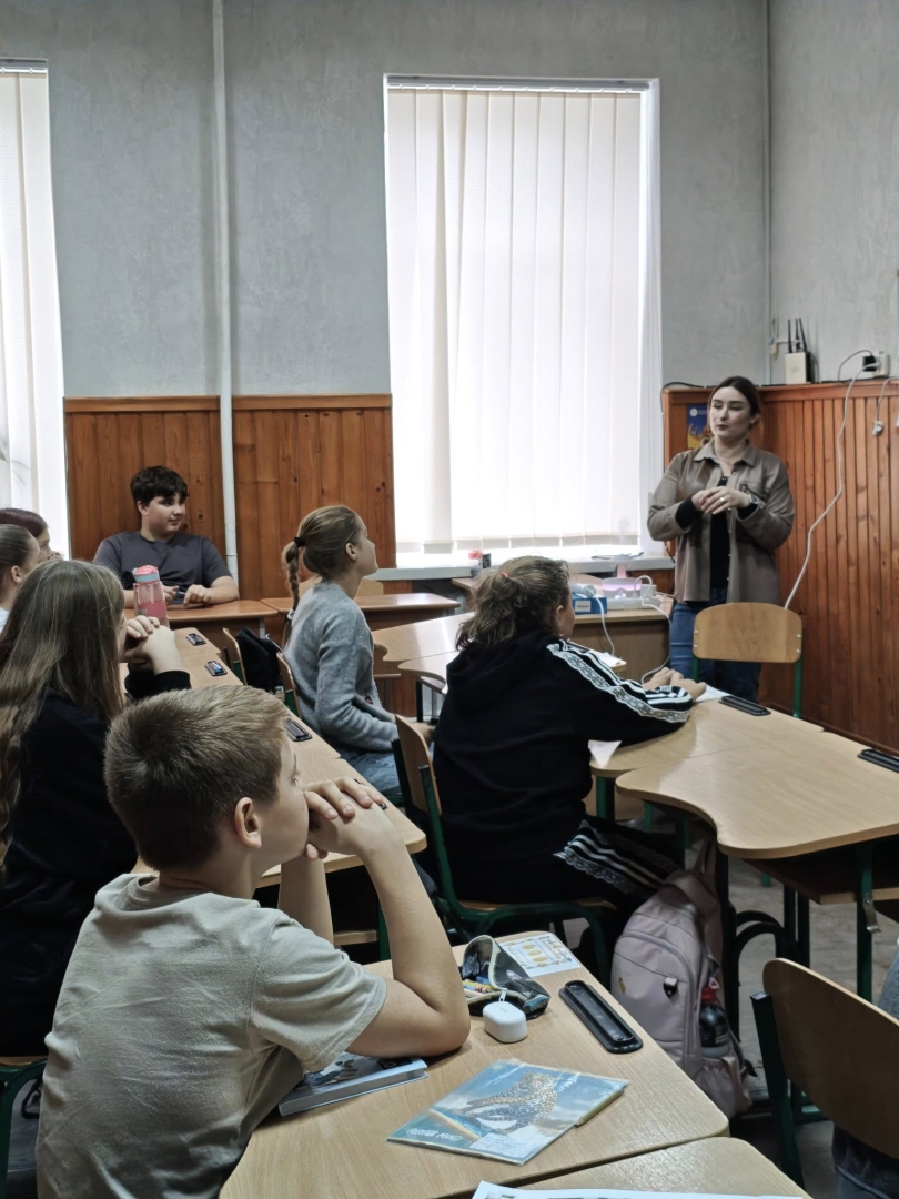 Сьогодні до учнів 8-Б класу завітала мама нашої ліцеїстки Зеленської Анастасії — Зеленська Тетяна Петрівна.