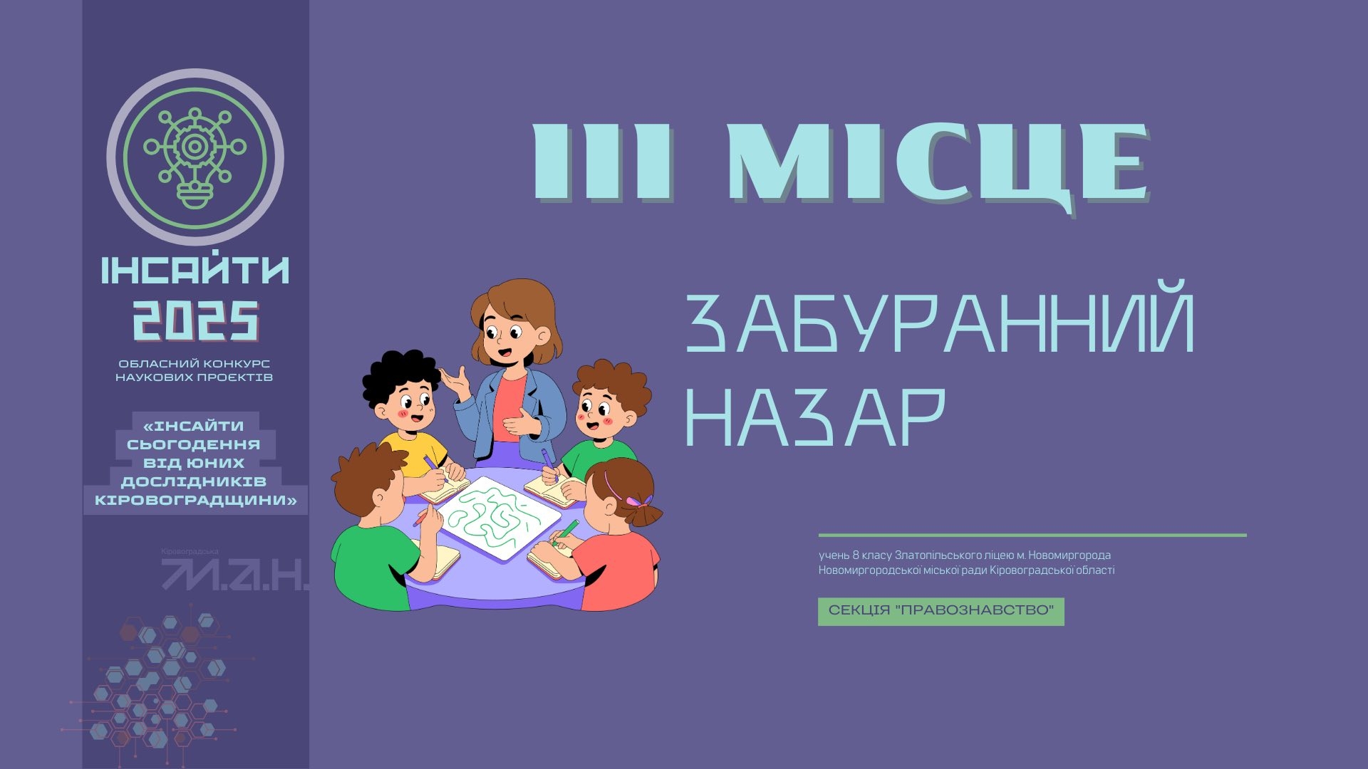 ІІІ місце — секція «Правознавство» Керівник — Бирзул Оксана Василівна, вчитель історії
