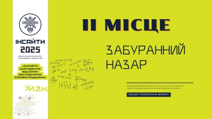 ІІ місце — секція «Теоретична фізика» Кеівник — Козяр Олександр Іванович, вчитель фізики